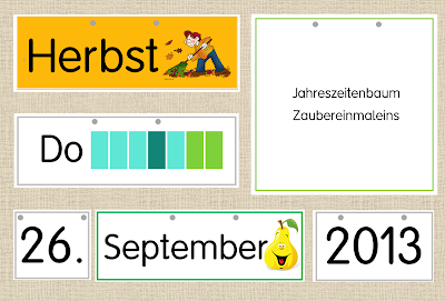 Ein paar Hinweise zum Basteln vielleicht noch: Ich habe die Vorlage gedruckt und matt laminiert. In der Datei sind alle Wortkarten. Auf der Fläche rechts habe ich die Jahreszeitenbäume aus dem Zaubereinmaleins hängen. Die sind einfach so schön und passen auf A4 gedruckt genau mit dazu. Der Kalender hängt bei mir mittlerweile auf der Standard-Pinnwand vom Schweden (wo Lehrerin halt gerne einkauft) und passt da auch genau drauf. Alle Karten sind mit dem ganz normalen Locher gelocht. Wenn man sie auf die Pinnwand legt, wie es einem taugt, kann man recht bequem Nägel anbringen bzw. auch nochmal korrigieren, falls es schief geworden ist 😉
