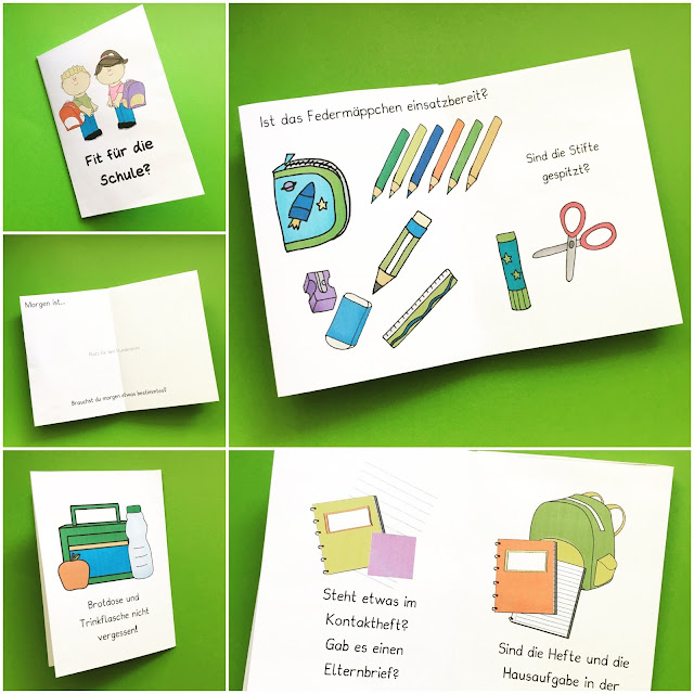 Heute gibt es ein kleines Pocketbook zur Vorbereitung auf den Schultag. Gedacht ist es für meine neuen Erstis, damit sie jeden Abend oder Morgen überprüfen können, ob der Schulranzen richtig gepackt ist. Vielleicht mag es ja noch jemand einsetzen.